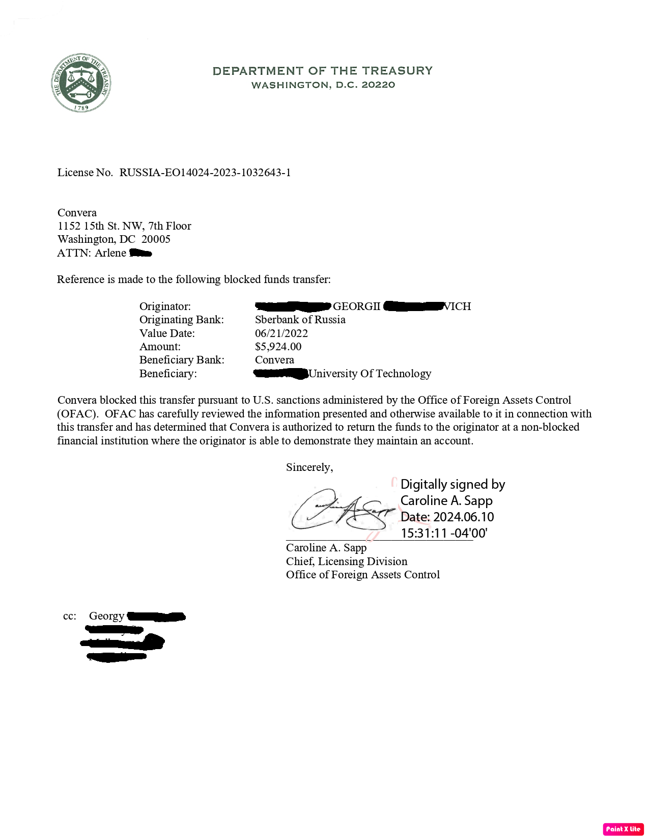 Кейс 5: $5,924 - Лицензия OFAC 2024 года