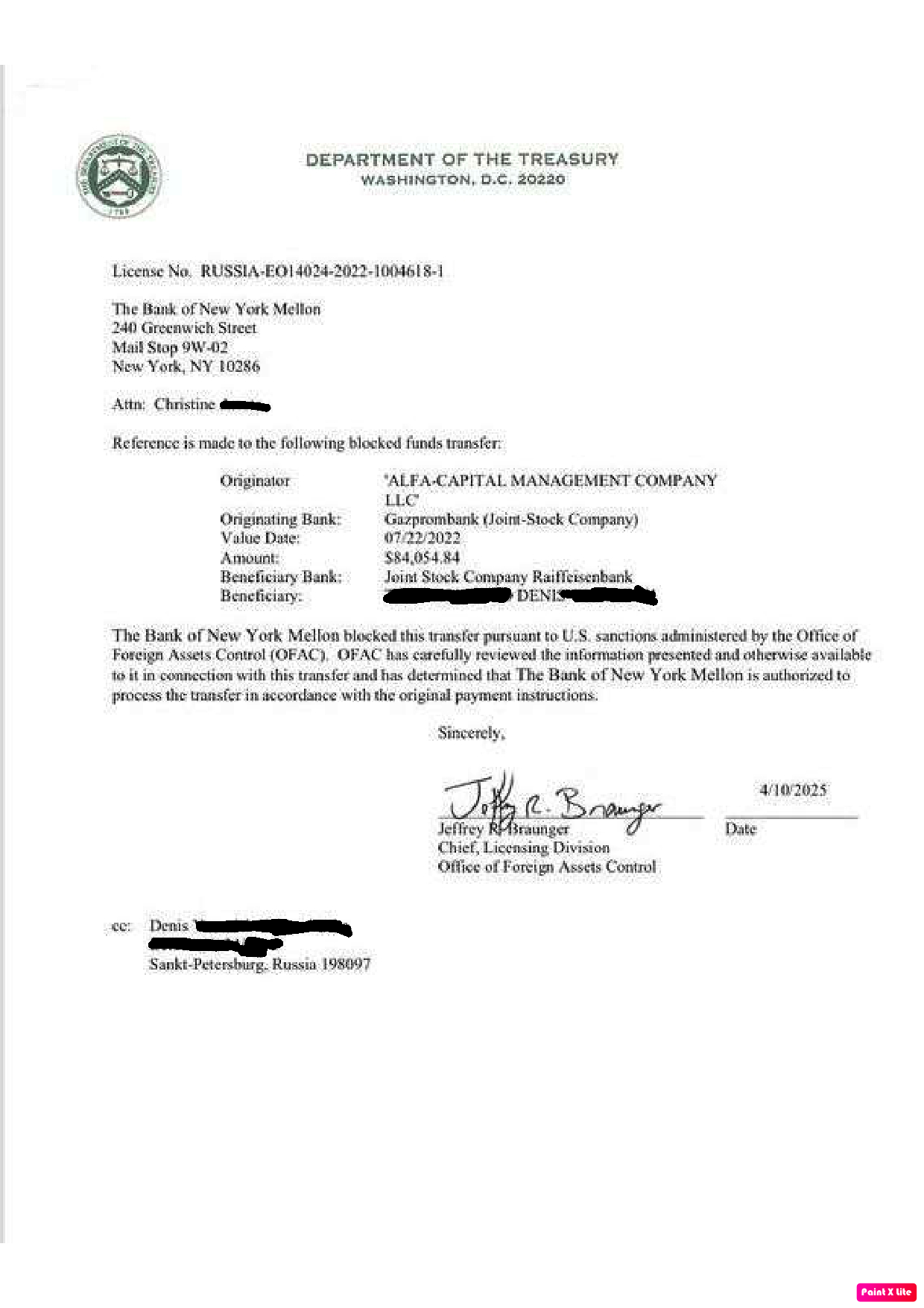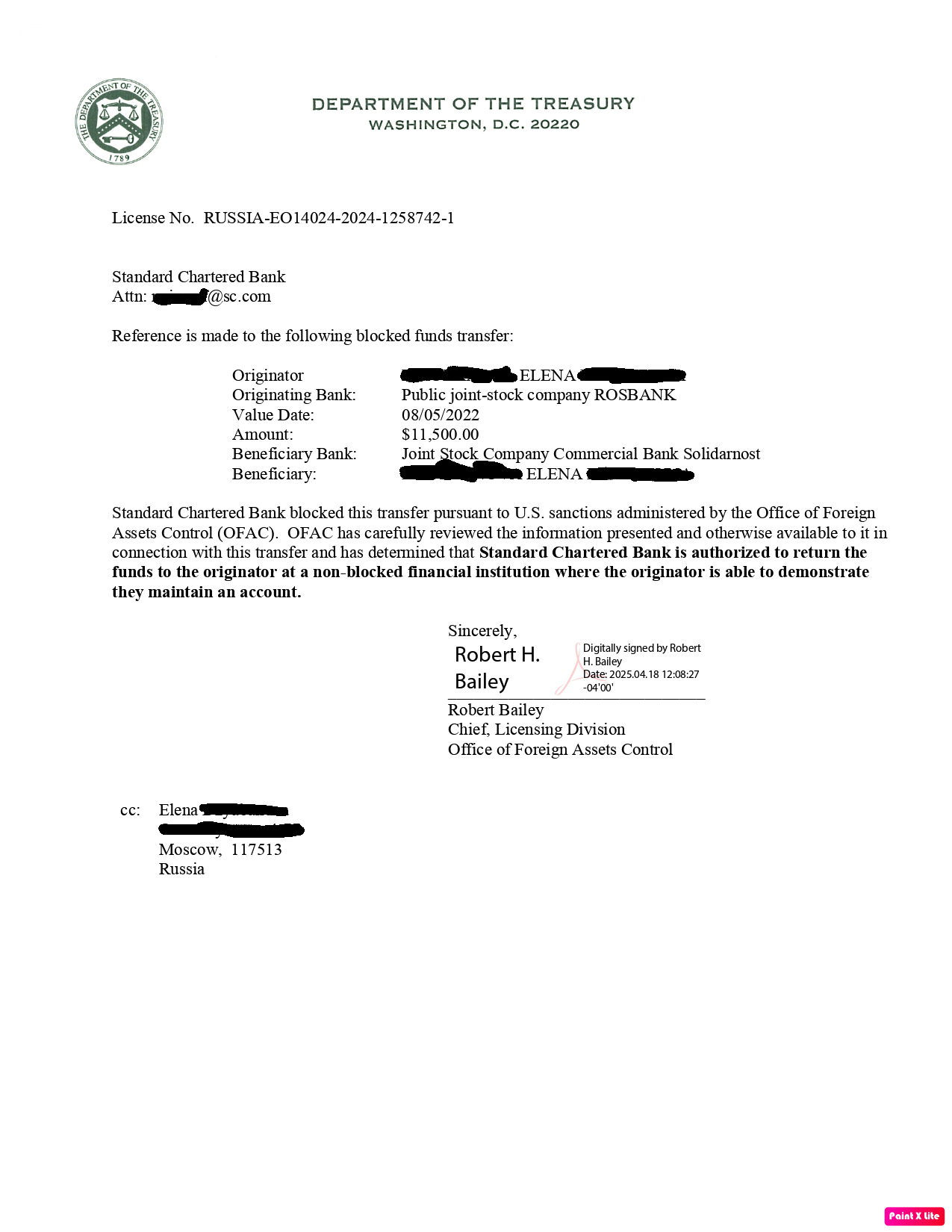 Решение: Получена лицензия OFAC EO14024-2024-1258742